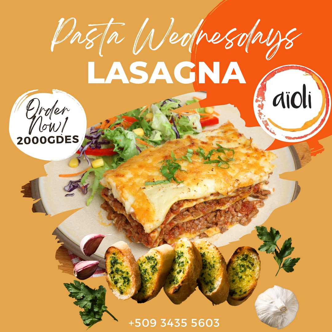 Demain c’est le mercredi des pâtes et nos lasagnes ont été demandées par beaucoup de nos clients, nous les ramenons donc cette semaine. Lasagnes + salade + pain à l’ail pour seulement 2000 Gds... Limité alors appelez et passez votre commande tôt